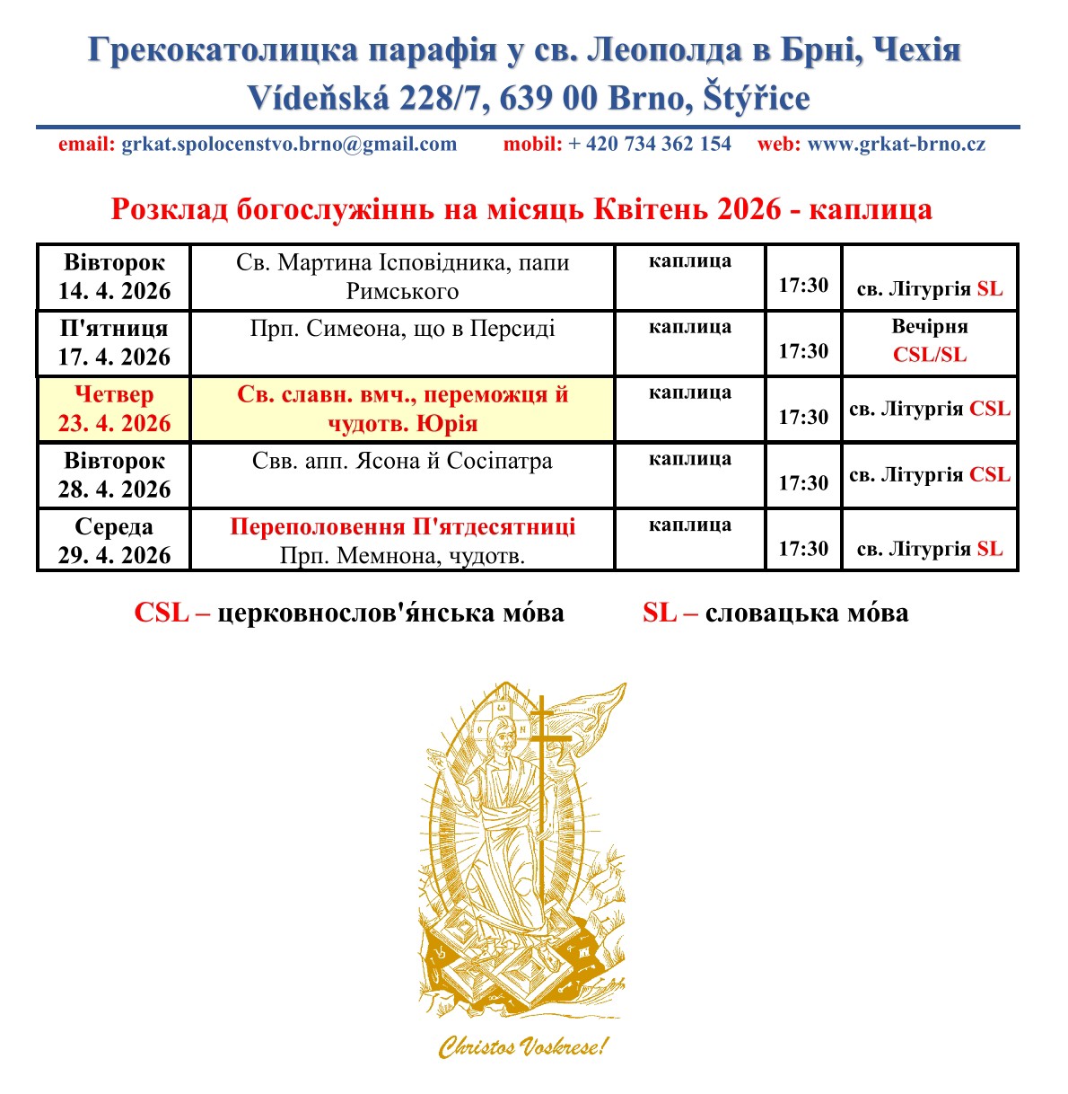 Řeckokatolická farnost sv. Marie Magdalény u sv. Leopolda v Brně | Грекокатолицка парафія у св. Леополда в Брни | Greek Catholic parish of St. Mary Magdalene at St. Leopold in Brno